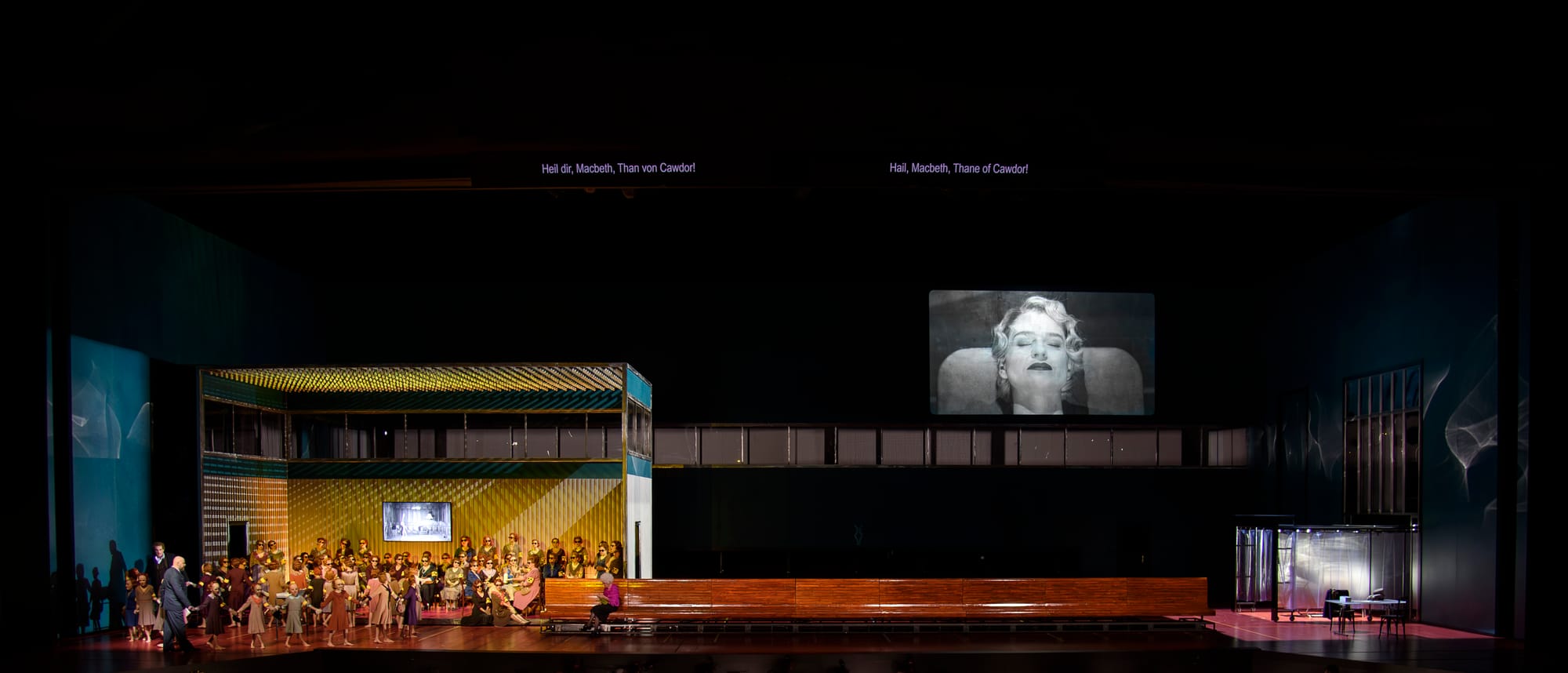 Wie auch in den zerrütteten Konstitutionen der einzelnen Charaktere passierte in dieser Inszenierung auf visueller und metaphorischer Ebene viel. Die blutigen Erinnerungen und gewaltvollen Taten der Lady Macbeth und ihres Mannes wurden im Laufe des Stücks immer wieder durch Darsteller·innen im Kindesalter verkörpert, die sich mal schlafend passiv, mal spielerisch umherspringend oder entpersonalisiert mit Maske in das teilweise überbordende Bühnengeschehen einfügten. Auf eindringliche Weise nahm der Regisseur hier den Ausspruch Pierre Victurnien Vergniauds, „Die Revolution ist wie Saturn, sie frisst ihre eigenen Kinder“, ernst. Vor dem Hintergrund einer exzellenten, durch eine klare und fokussierte Ästhetik gekennzeichnete Bühnen- und Kostümgestaltung durch Małgorzata Szczęśniak, war dieser Opernabend ein musikdramatisches Fest künstlerischer Meisterklasse. Im Zuge dessen komplettierten die Videoelemente der Künstler Denis Guéguin und Kamil Polak sowie das Lichtdesign von Felice Ross die Gesamtästhetik auf produktiv-treffende Weise. Diese weiteren Ebenen reichten von einer intimen Nahaufnahme des Gesichts der Lady Macbeth während einer gynäkologischen Untersuchung zu Beginn der Aufführung, bis hin zu Animationen von durch Wälder irrenden Kindern.