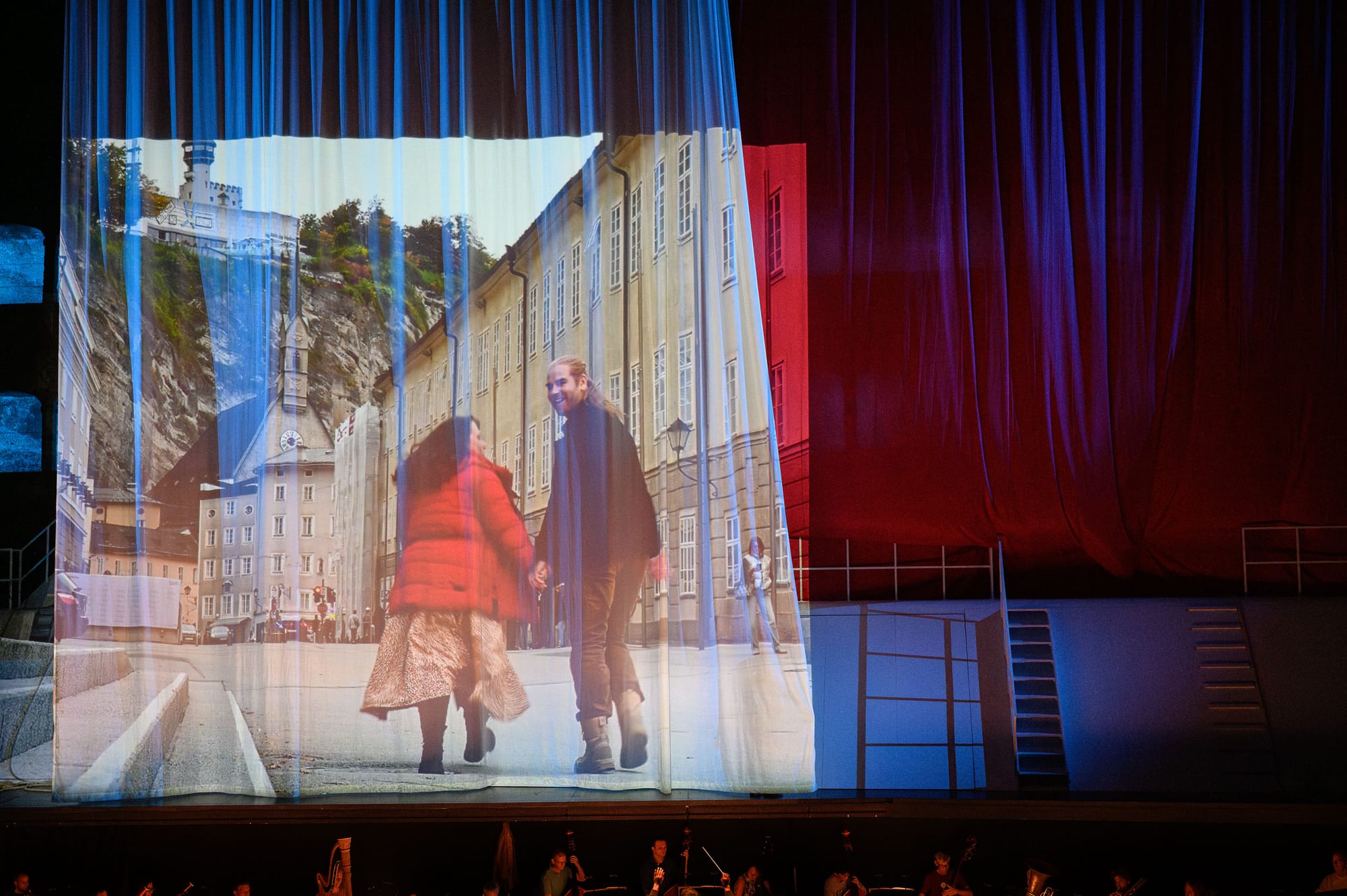 Einen letzten, starken Akzent setzt die Produktion im Finale: Auf das große weiße Segel projiziert sich ein Film, der Senta und den Holländer durch die Salzburger Hofstallgasse gehen lässt – mitten im realen Stadtbild, vor Festspielhaus und Felsenreitschule. Die berühmte Erlösungsszene verliert hier ihren Pathos und wird zu einem Bild der Selbstbestimmung: Senta befreit sich aus den engen Räumen ihres bisherigen Lebens, nicht durch Tod, sondern durch Aufbruch.