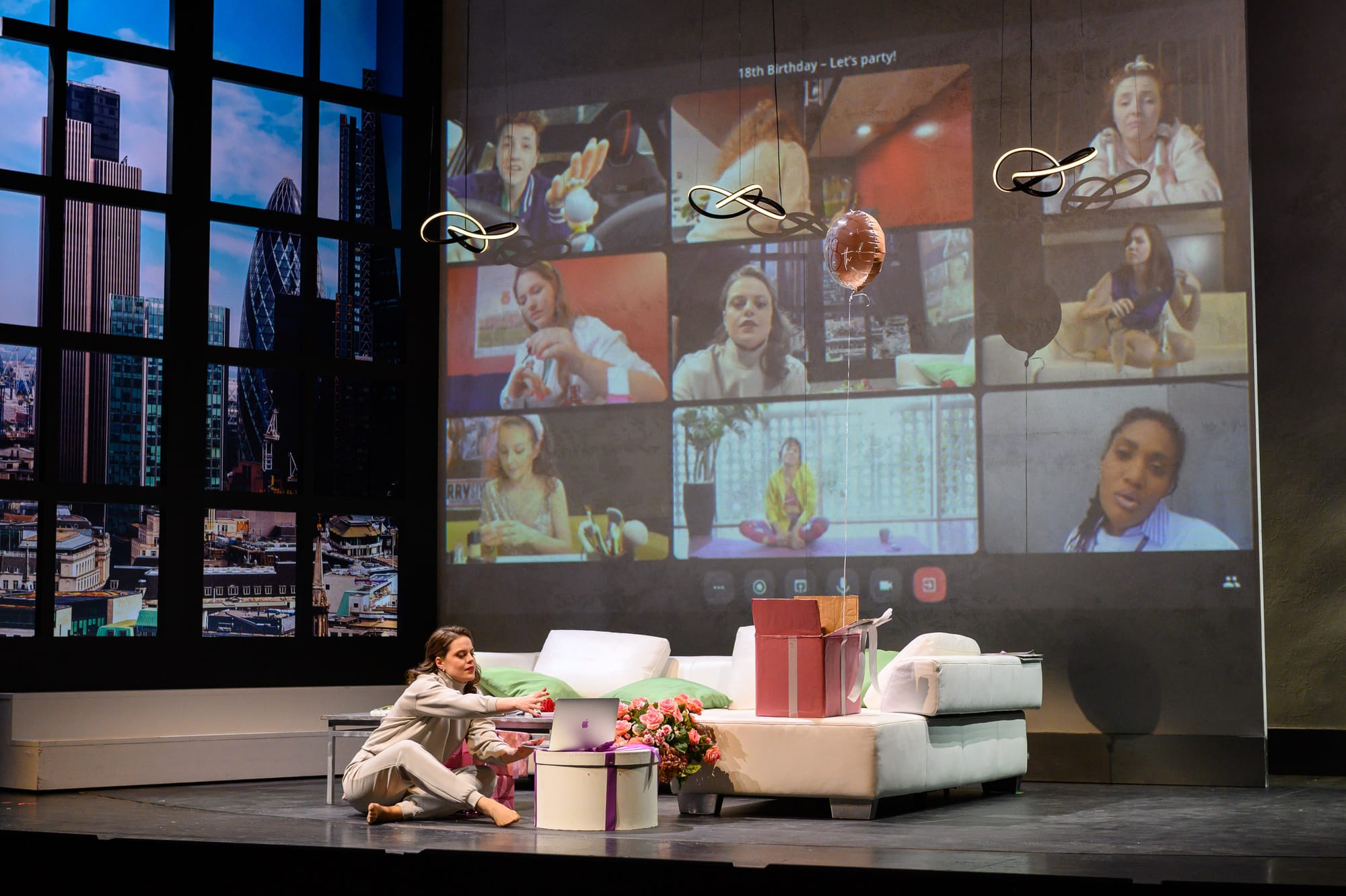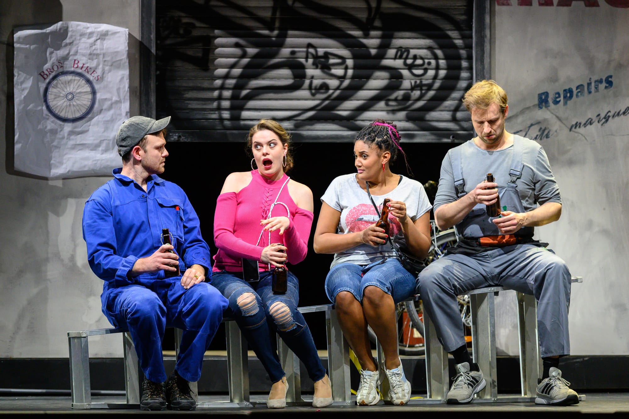 Regisseurin Christiane Lutz gelingt das Kunststück, das komödiantische Potential des Werks mit der psychologischen Ernsthaftigkeit der Figuren zu verweben. Sie verlegt die Handlung in die Gegenwart, aus der Adelsgesellschaft werden Studenten eines Nobel-Colleges in London, Lyonel und Plumkett sind Inhaber einer Fahrradwerkstatt. Wenn die vier Protagonisten nun singen „Wie lustig sich das Rädchen dreht“ geht es also nicht mehr um die ursprünglichen Spinnräder. Lutz erzählt das Stück als Spiel mit Identitäten und gesellschaftlichen Fassaden, wobei der ironische Ton nie zum Selbstzweck wird, sondern das emotionale Zentrum der Handlung betont. Die Figurenzeichnung ist detailreich und auch die Personenführung des Chores zeichnet sich durch Detailverliebtheit aus. Jede Nebenhandlung wird sorgfältig geführt, ohne den Fluss der Erzählung zu überfrachten. Der klassische Rollentausch wird hier nicht bloß belächelt, sondern als subtile soziale Spiegelung inszeniert – mal mit einem Augenzwinkern, mal mit spürbarer Melancholie. Das Bühnenbild von Natascha Maraval fügt sich hervorragend in die moderne Fassung ein und zeigt das nüchterne Luxusapartment mit eigenem Aufzug und Ausblick auf den Swiss Re Tower („The Gherkin“) oder der in einem Bogen eines Viadukts nebst dem Job Center gelegenen Fahrradwerkstatt. Auch die Kostüme von Dorothee Joisten spiegeln das heutige London in all seinen Facetten wider und vervollständigen hervorragend das Gesamtbild des Regiekonzepts, wie auch die Videoprojektionen von Tobias Witzgall, die die Handlung um Videokonferenzen oder Chatnachrichten gekonnt ergänzen.
