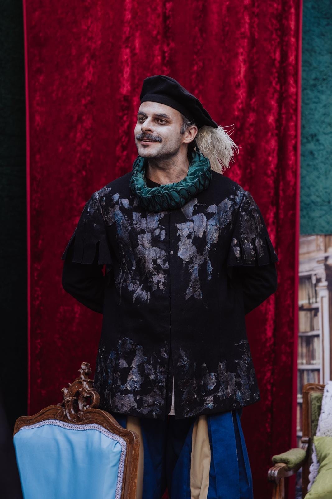 Christopher Korkisch brilliert in der Rolle des William Shakespeare. Seine Darstellung ist nicht nur durch eine erstaunliche Bühnenpräsenz geprägt, sondern vielmehr auch durch seine herausragende Artikulation, klare Wortdeutlichkeit und präzise Betonung. Jeder Satz besticht durch Klarheit und Ausdruckskraft, die besonders bei den zahlreichen Zitaten, teilweise auch in englischer Sprache, aus den Werken des englischen Nationaldichters deutlich wird. Mit seinen darstellerischen Qualitäten, die sich oftmals schon in kleinen Gesten und der Mimik manifestieren, verleiht er der Figur des William Shakespeare eine besondere Intensität und Authentizität, sein Auftritt zählt zu den Höhepunkten dieser Inszenierung.