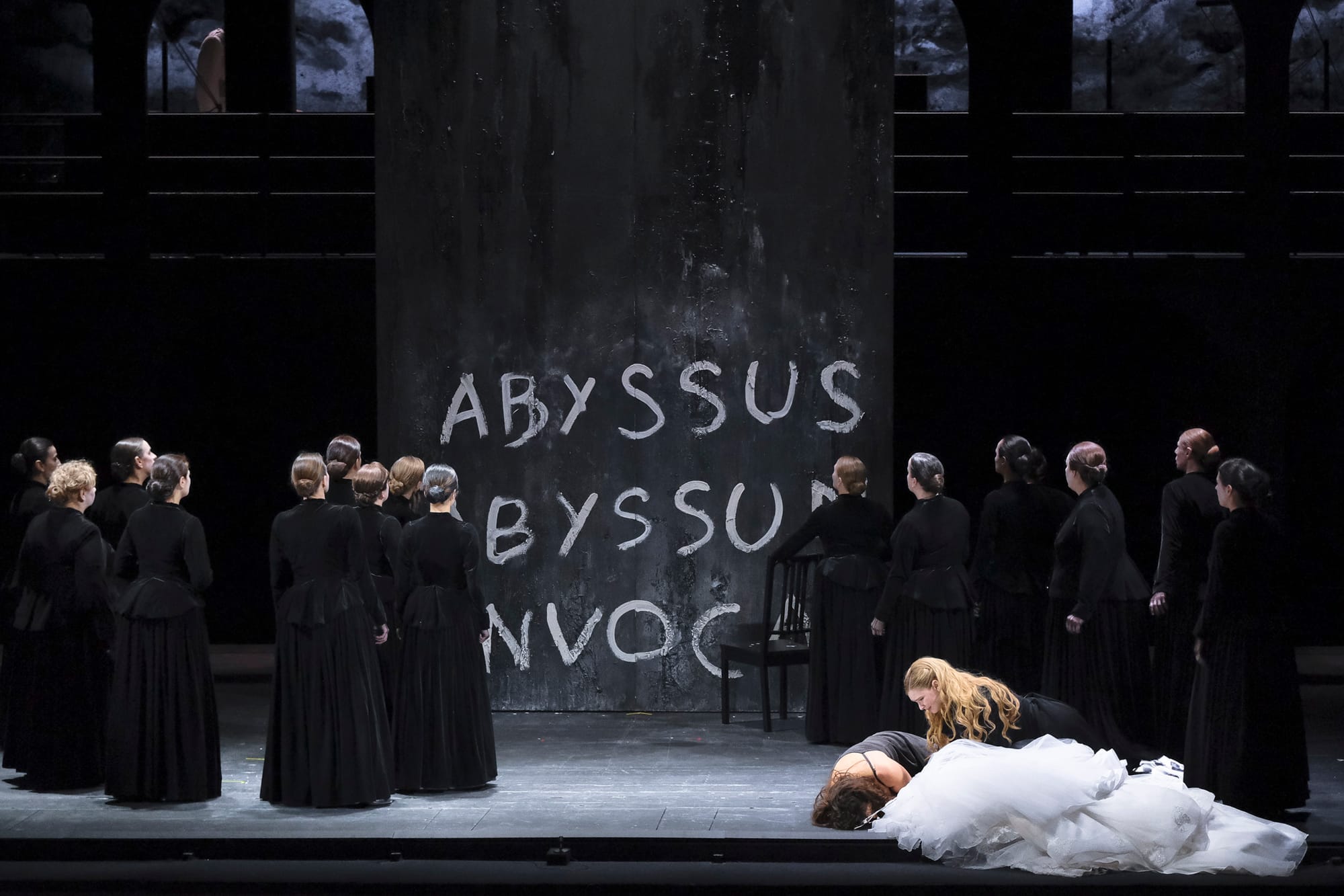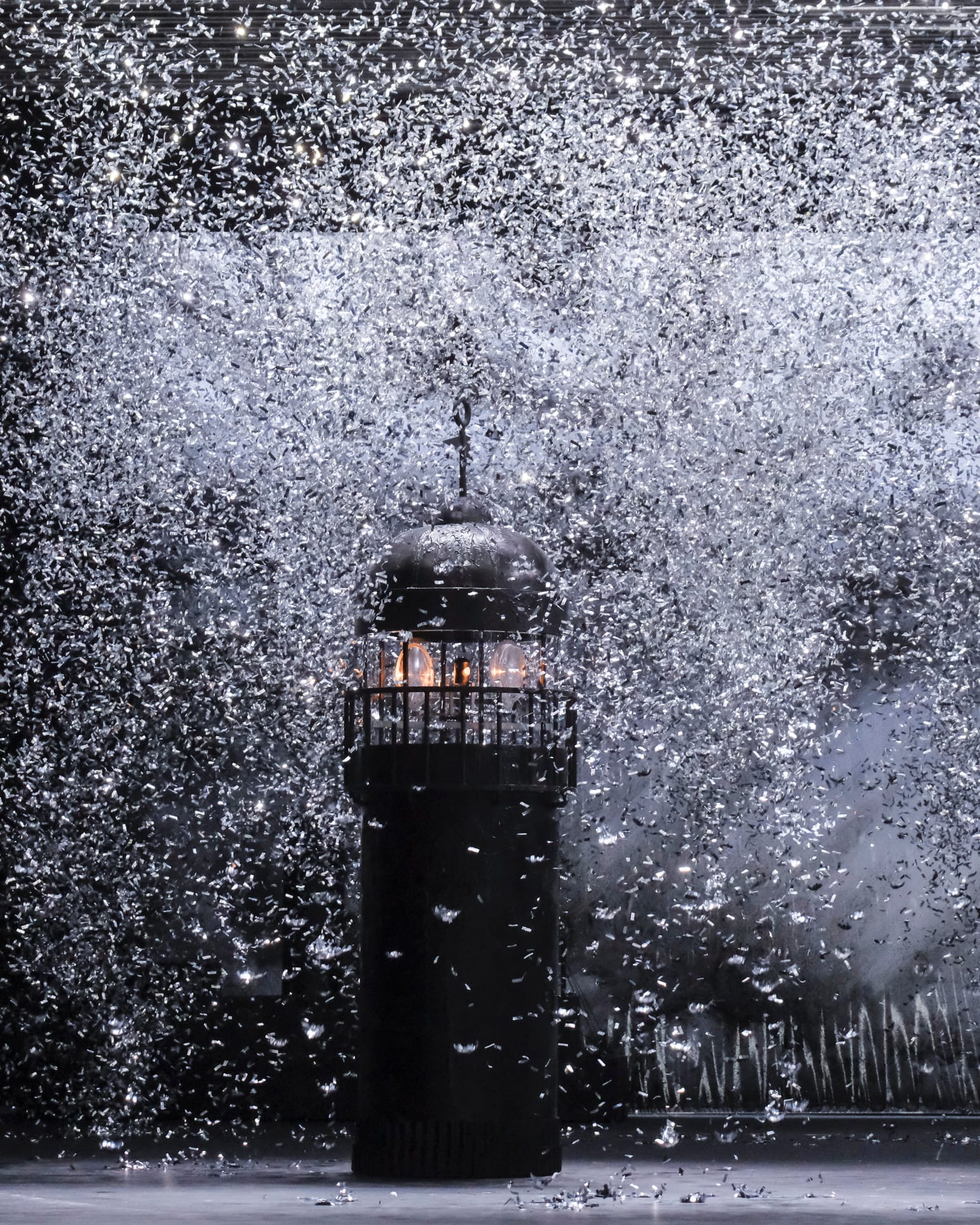 Py, sichtlich in Höchstform, nutzt dieses farbenprächtige Drama, das wie schon gesagt auf einer bretonischen Legende basiert, um all seine düsteren Facetten auszuloten: Das geschäftige Treiben auf der Bühne, das bereits in der Eröffnungsszene sichtbar ist, deutet die kriegerischen Ereignisse an, die der eigentlichen Handlung vorausgehen und kündigt gleichzeitig durch die unerwartete Anwesenheit eines Tiefseetauchers das fatale Ende an. Die virtuose Abfolge kurzer Szenen folgt getreu der Erzählung und profitiert dabei von zahlreichen technischen Mitteln – einer Drehbühne oder auf der Bühne selbst umgestaltete Kulissen – und visuelle Elementen mit einer faszinierenden Ode an die schwarze Farbe im Stil von Pierre Soulages (1919-2022), die charakteristisch für Weitz‘ Fantasie ist. Pys langjähriger Mitarbeiter fügt zudem einige Subtexte hinzu, um die Handlung zu illustrieren, von der industriellen Kulisse - eine Hommage an die Stadt Douarnenez – bis hin zu den poetischen Visionen eines Ozeandampfers. Die Regie der Sänger-Schauspieler, ist wie immer brillant in Pys Inszenierungen, hier nutzt er einige geniale Details aus, von Saint-Corentins fantastischer Vision, die sich im zweiten Akt in eine Szene des Wahnsinns verwandelt, bis zum gewaltigen Volkschor zu Beginn des dritten Akts, der wie ein ausgelassener Junggesellenabschied wirkt. Das Meer, von Beginn an als Bedrohung präsent, setzt sich schließlich wieder durch und beschließt das Werk mit den erwarteten tragischen Riffen. Auf dem Höhepunkt ihres Könnens beeindruckt das Duo Py/Weitz mit der Schlichtheit ihrer Idee, einem klugen sparsamen Umgang mit Mitteln: Der bewegende, hypnotische Fluss des Blechs krönt die Tragödie mit einem passenden unprätentiösen Schluss. Dies verleiht der Entfesselung individueller Leidenschaften, die in vielerlei Hinsicht zutiefst berührt, ihre volle Würde und erinnert uns daran, wie oft die Menschheit selbst für ihr großes Unglück verantwortlich ist – von ihrer erbärmlichen Ohnmacht angesichts der unerbittlichen Naturgewalten bis hin zur obsessiven Wiederholung bewaffneter Konflikte.