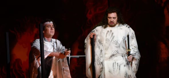 Als vierter Tenor präsentiert schließlich der Kroate Krsimir Spicer eine kupferfarbene, kraftvolle orgelnde Stimme, die sich ideal zur Personifizierung des Hohen-Priesters eignet. Die einzige tiefe Tonlage in dieser Partitur ist der kurze Eingriff von Die Stimme, gesungen von dem jungen französischen Bass Julien Véronèse.