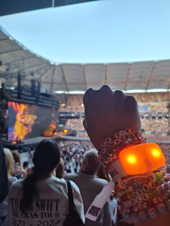 Der Weg zum Stadion wurde von der Stadt liebevoll für die heimischen und angereisten Swifties mitgestaltet. Aus den S-Bahnen wurden „Swiftie- Trains“, in denen über die Bildschirme der Text von Taylors Song Cruel Summer als Karaoke-Version lief. Es wurde mitgesungen, die ersten Armbänder getauscht und sich unterhalten. Die Stimmung der Fans war auch vor der Veranstaltung schon durchgehend positiv und aufgeschlossen.