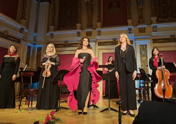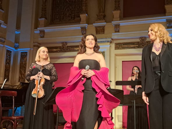 Mit dem argentinischen Komponisten Astor Piazzolla begegnet dem Publikum erstmals ein männlicher Künstler. Mit dem Tango "Por una cabeza", der unter anderem aus dem US-amerikanischen Film "Scent of a Woman" bekannt ist, spielt das World Chamber Orchestra auf höchstem Niveau. Dieser schwungvolle Tango verleitete auch Dirigentin Aleksandra Korobka sogar zu einem spontanen Tanz mit einem Herrn aus dem Publikum. Dieses Musikstück ist die optimale Überleitung zu einem weiteren Werk des argentinischen Komponisten, seiner Tango-Operita "María de Buenos Aires" (Libretto Horacio Ferrer), das am 8. Mai 1968 in Buenos Aires uraufgeführt wurde. Diese Oper erlebt aktuell eine Renaissance und wird aktuell in der Wiener Kammeroper gespielt. Bereits im Sommer 2023 war Flaka Goranci beim Immling Festival in Halfing in der Titelpartie zu erleben. IOCO berichtete von diesem großartigen Rollendebüt (Link: https://www.ioco.de/halfing-immling-festival-2023-maria-de-buenos-aires-tango-operita-ioco-kritik-31-07-2023/). Mit der herausragenden Darbietung von "Yo soy María" (Ich bin Maria) kann die Mezzosopranistin das Publikum, wie schon beim Immling-Festival, in ihren Bann ziehen.