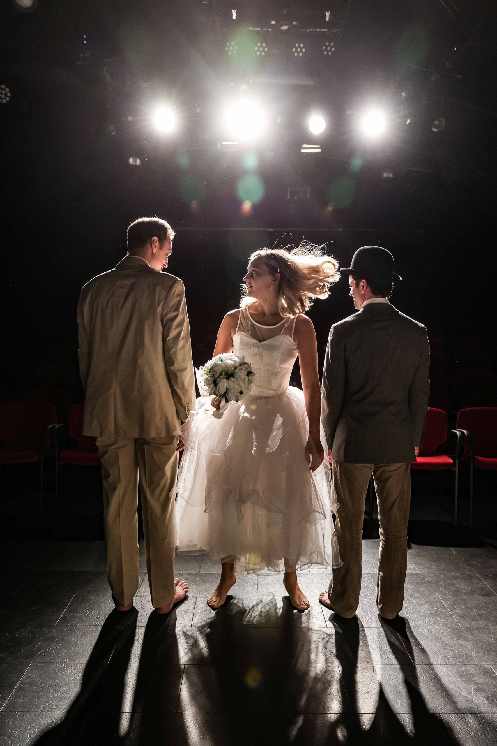 Gerhard Werdekers Regie hält diesem Stück stand und scheut auhc seine Vielschichtigkeit nicht. Er erzählt nicht über Zensur, Macht und Täuschung – er zeigt sie, bis in die kleinsten szenischen Übergänge hinein. Das Publikum bleibt nie außen vor, sondern wird konsequent in das Spiel hineingezogen: als Hochzeitsgesellschaft, als Zeuginnen und Zeugen und Komplizinnen in einem Theater, das vorgibt, keines zu sein. Werdeker inszeniert dabei mit einem feinen Gespür für Rhythmus und Stille. Er vertraut seinen Darsteller:innen, lässt sie präzise und glaubhaft agieren und durchbricht zugleich immer wieder den vermeintlich sicheren Boden der Bühne, indem er Realismus, Spiel-im-Spiel und staatlich verordnetes Theater aufeinanderprallen lässt.