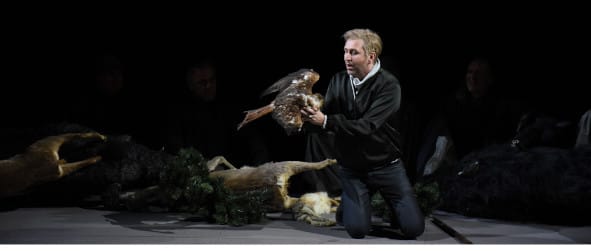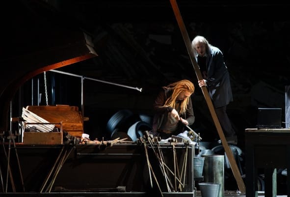 Egils Silins ist Wotan und Wanderer (Rheingold, Walküre, Siegfried), Gott, Naturfrevler, Machtmensch und gescheiterter Herrscher der Welt. Silins ist nicht eine Figur, er ist viele, verändert sich mit Voranschreiten der Geschichte nach und nach. Seine herrliche Stimme, sonor, gepaart mit guter Textklarheit erfüllt die anspruchsvolle Bandbreite dieser Rolle. Mit fließender Geläufigkeit und Virtuosität, suggestivem Spiel, tönt sein dramatisch timbrierter Bassbariton. Fricka Katrin Wundsam, Wotans Ehefrau, Göttin und Hüterin von Ehe und Moral (Rheingold, Walküre), ist ein selbstbewusster unbeugsamer Charakter, eine Dame von Welt. Dicht gestaltete Gesangsbögen und wohl dosierte Noblesse lassen dramatisch aufwallend ihre Persönlichkeit und Kompetenz aufleuchten. Die fokussierte Stimme klingt wunderbar sinnlich. Ihre Waltraute (Götterdämmerung) ist eine Walküre mit eigener Identität. Suggestiv berührend die zentralen Passagen ihrer Waltrauten-Erzählung.