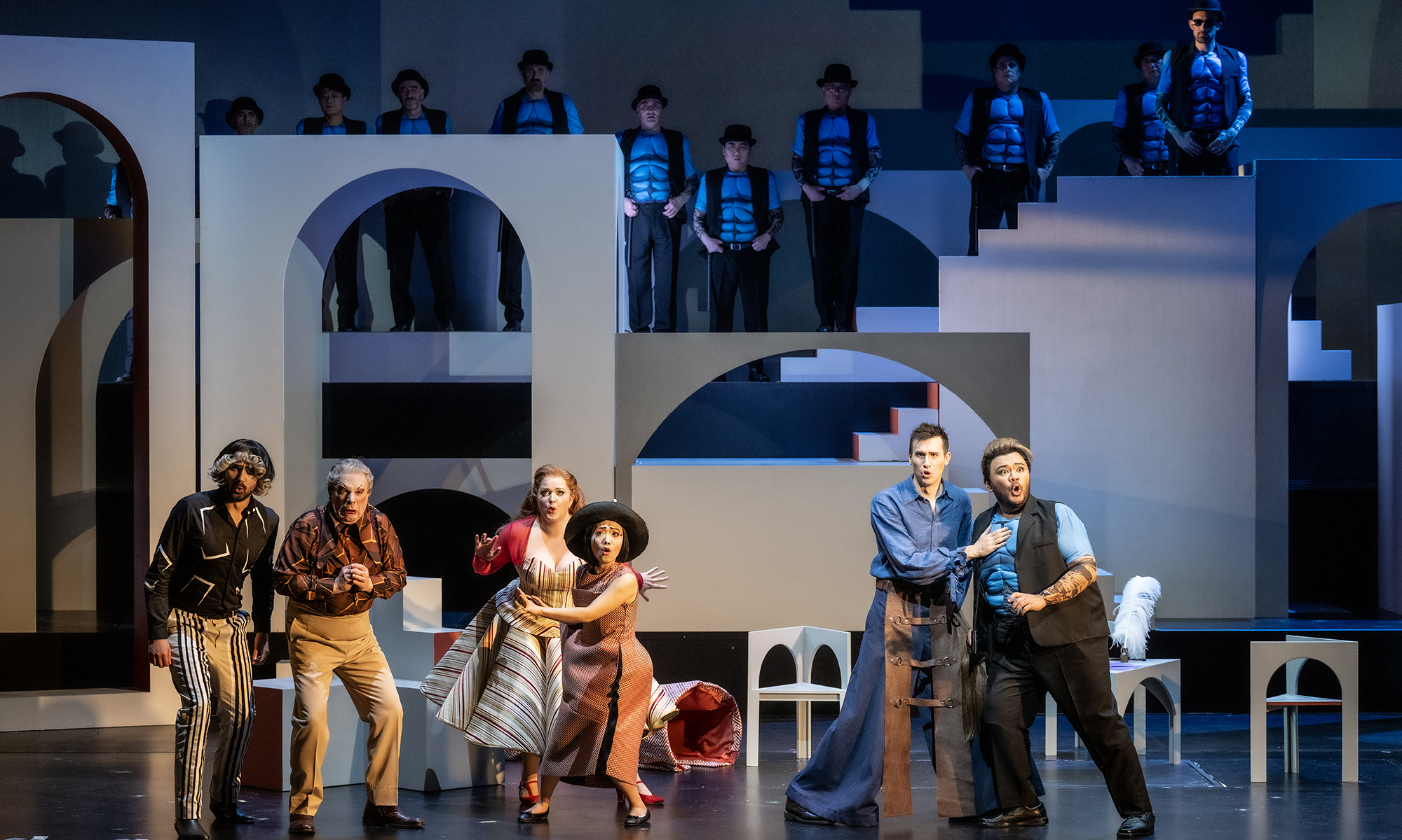 Heute sehen wir in Wuppertal kein großes Seelendrama, keine unerfüllt-schwierige Liebe, keine Selbstmord- oder Rache-Arien und keinen fulminanten Volksaufstand und erst recht keine Wahnsinns-Arie. Schwäne und Elefanten erscheinen ebenfalls nicht. Heute sehen wir vielmehr eine feine, temporeiche Komödie, in der niemand zu Schaden kommt und die Verwicklungen einfach nur komisch sind. Die Welt ist heiter und ein kurzer Schmerz verfliegt sogleich wieder. Zum Schluss gibt es dann natürlich ein Happy End. Eine schöne, bunte Komödienwelt voll von skurrilen Entwicklungen, die das Stück in hohem Tempo vorantreiben.