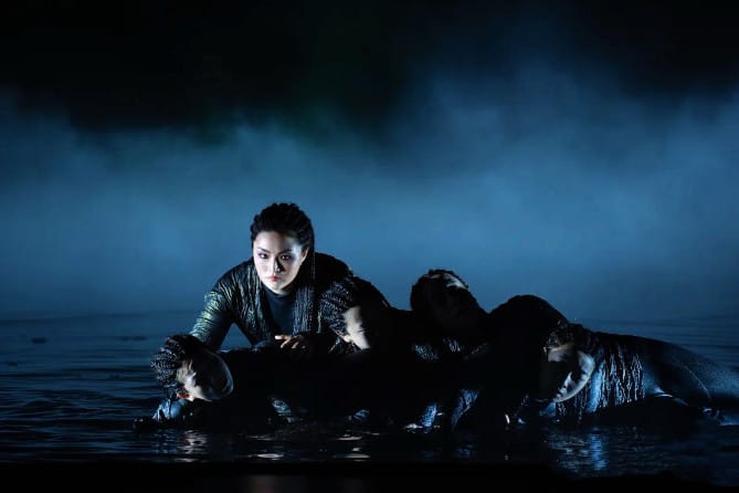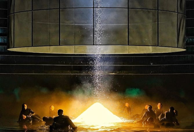 Getong Feng: Warum ist die ganze erste Szene in Stefano Podas Inszenierung im Wasser, siehe Foto oben? Die Rheintöchter sollen im seichten Wasser absichtlich Geräusche machen. Viele vom Publikum meinen, dass diese dauernhaften Geräusche störend sind. Wie ist die Idee von Stefano Poda?